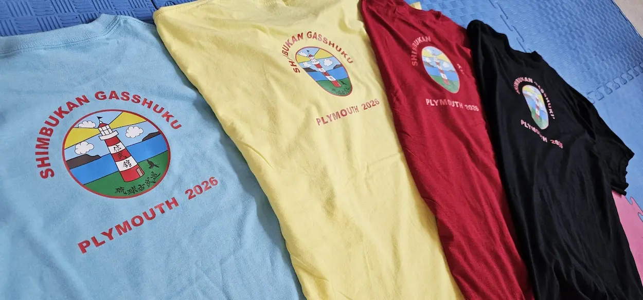 Official Gasshuku T‑shirt — available in adult (£20) and child (£18) sizes.